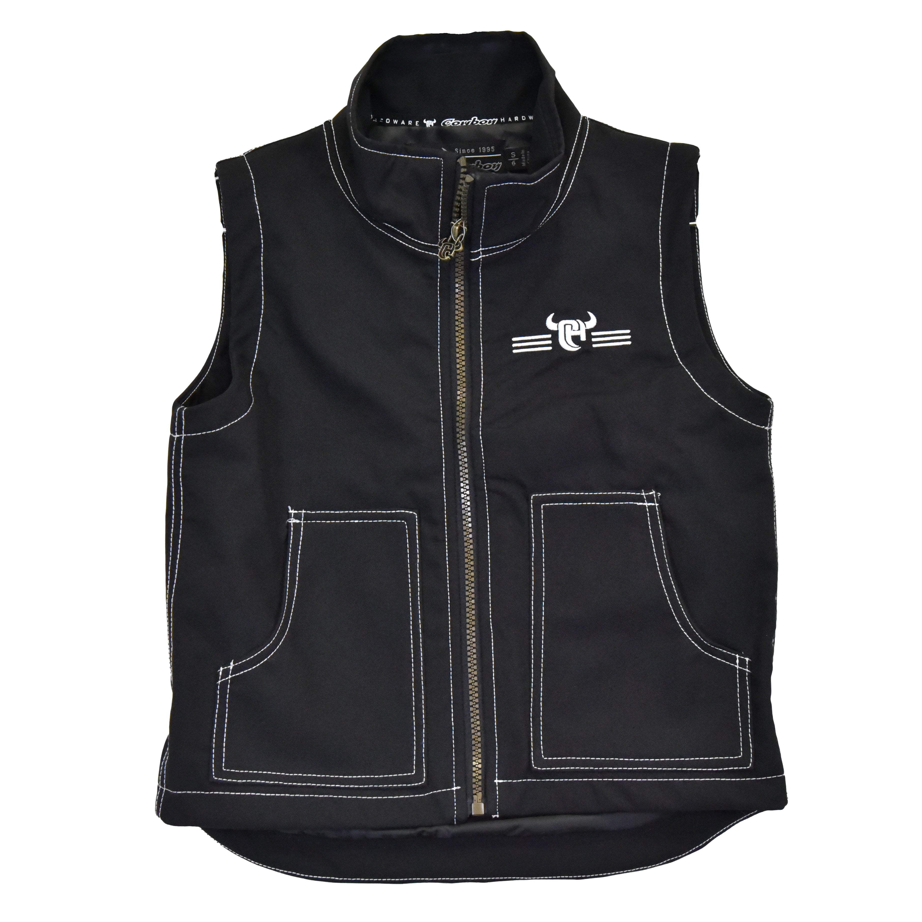 Gear up your young cowboy with the Youth Boy's CH Black "Bar CH" Tech Vest from Cowboy Hardware. This stylish black vest features a striking white embroidered logo, making it a perfect blend of rugged charm and modern flair. Crafted for comfort and durability.