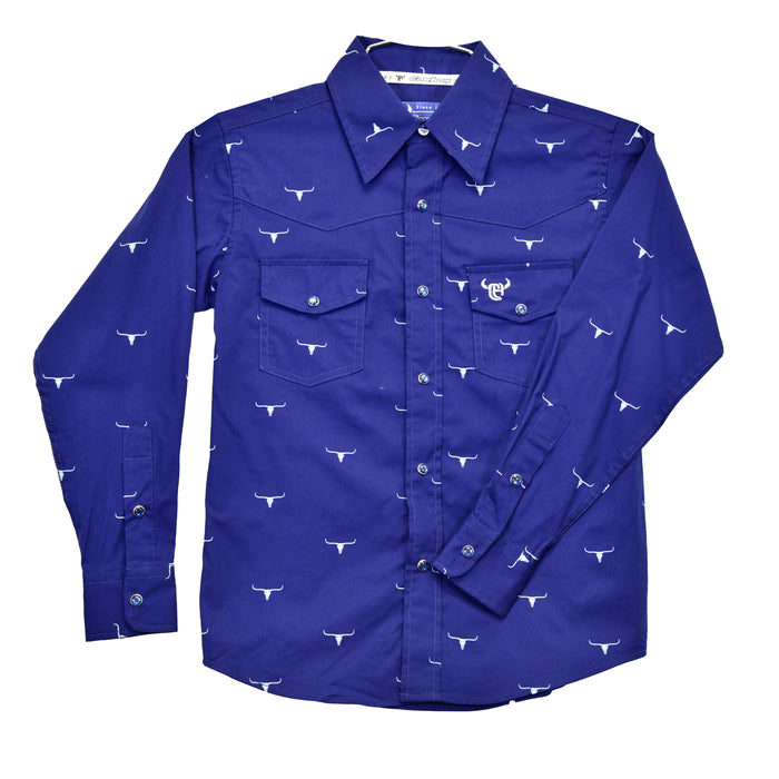 Toddler Boy's CH Royal Blue "Scatter Skull" Long Sleeve Western Shirt