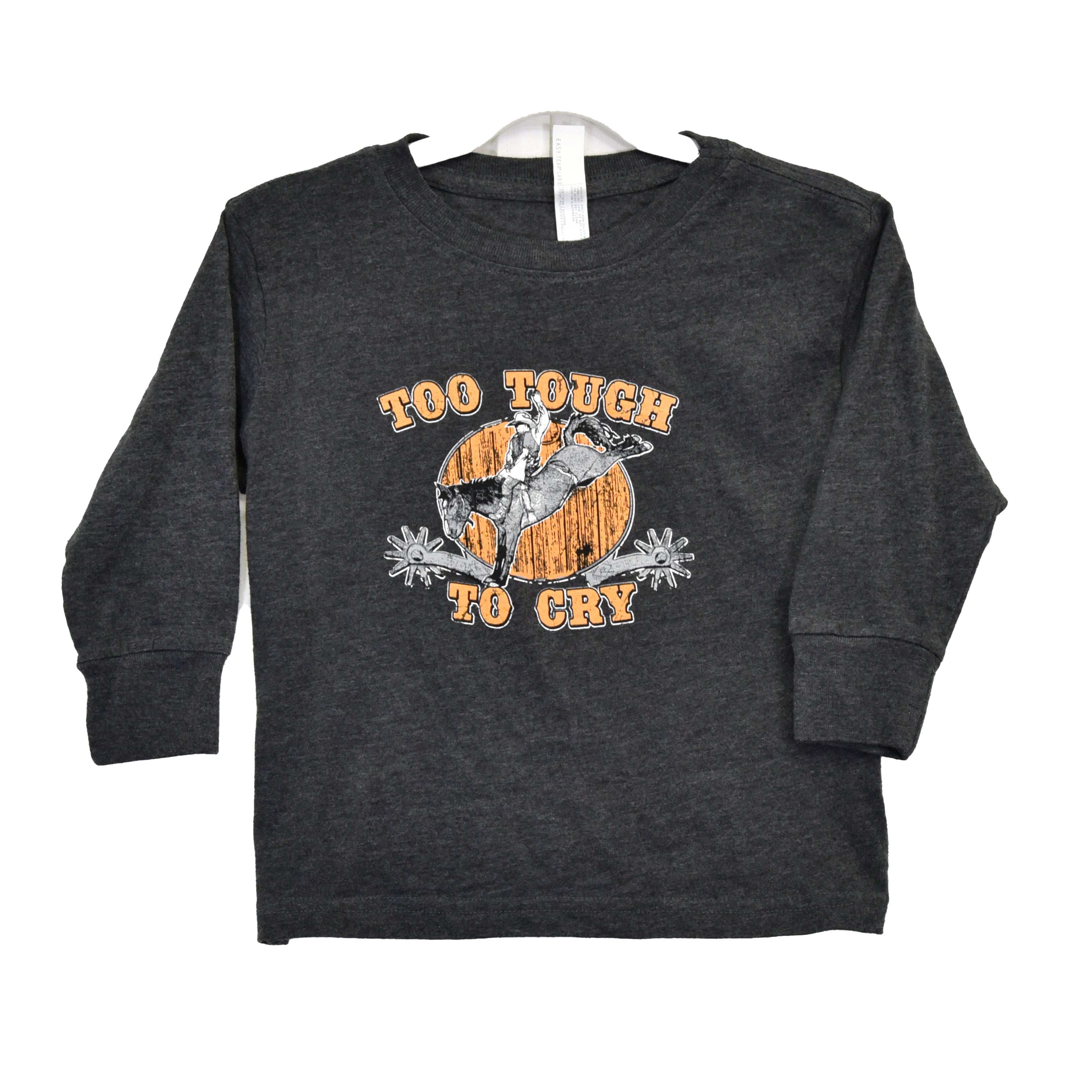 Get your little cowboy ready for adventure with the Toddler Boy's CH Vintage Smoke "Too Tough to Cry" Long Sleeve T-Shirt from Cowboy Hardware. Crafted from soft, durable fabric.