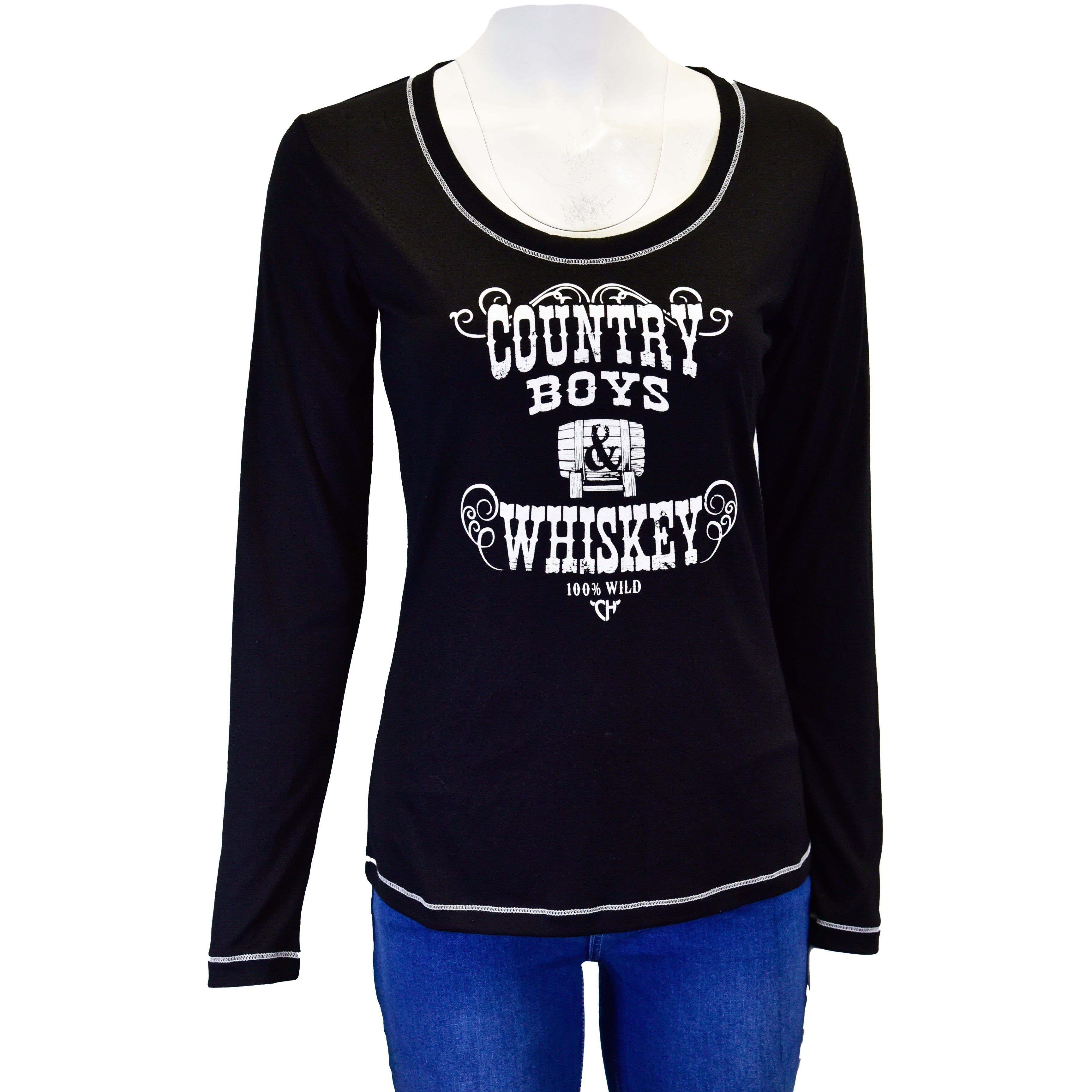 Women's CH "Country Boys & Whiskey" Black Long Sleeve Blouse