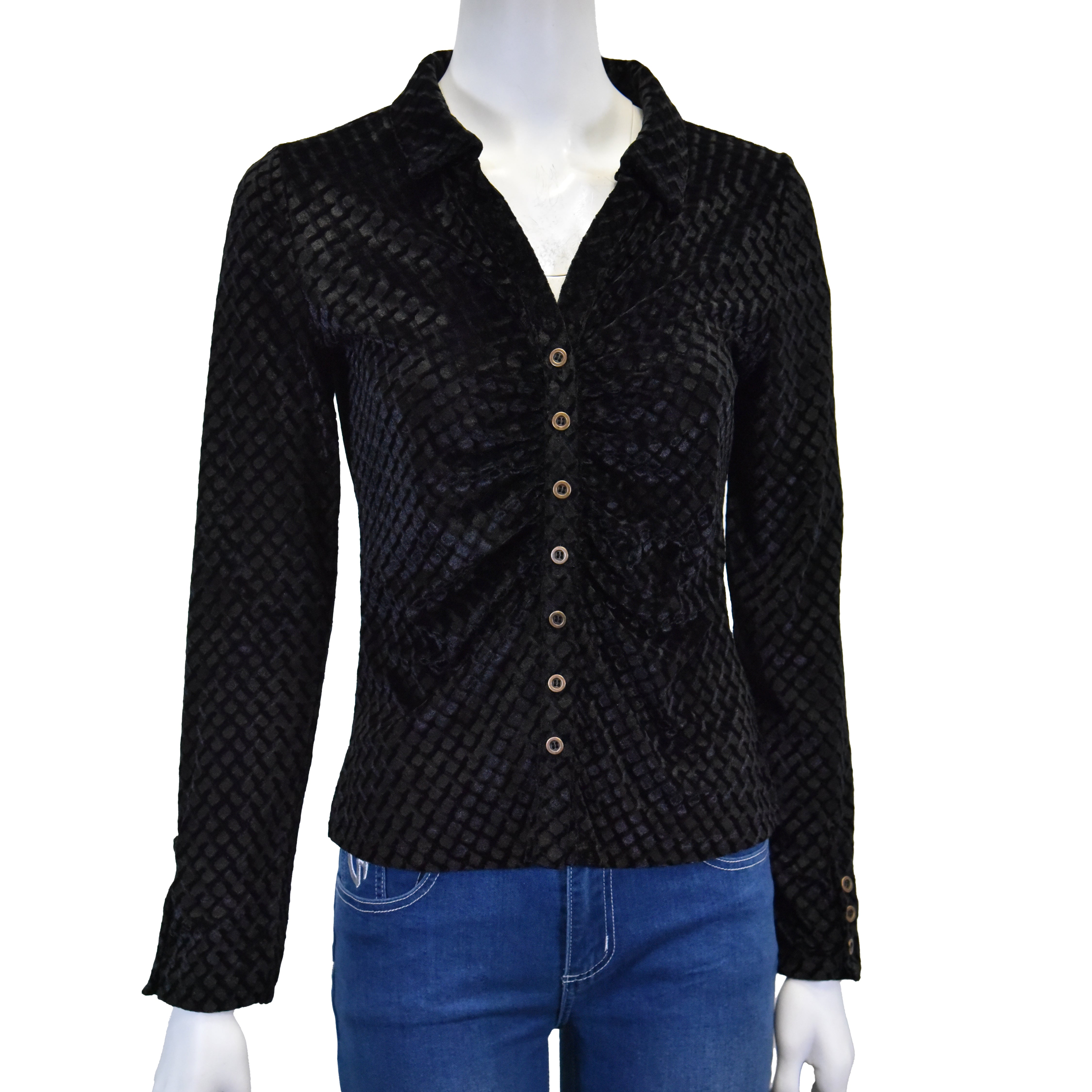 Women's CH "Velvet Button Up" Black Long Sleeve Blouse