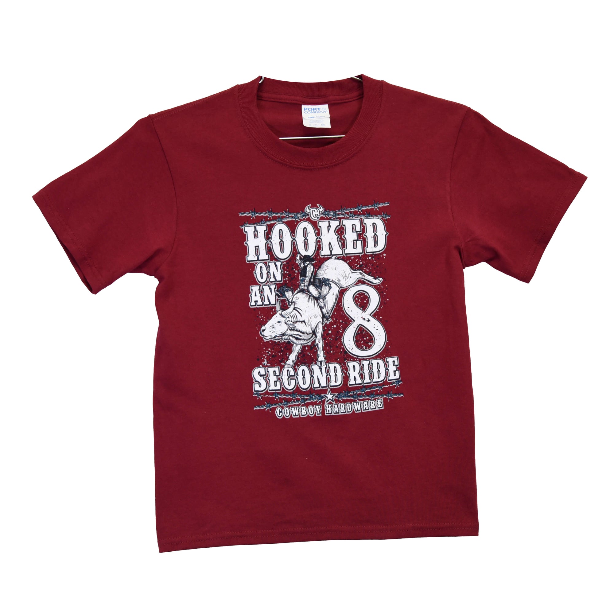 Youth Boy's Cowboy Hardware Cardinal "Hooked on an 8 Second Ride" Short Sleeve T-Shirt